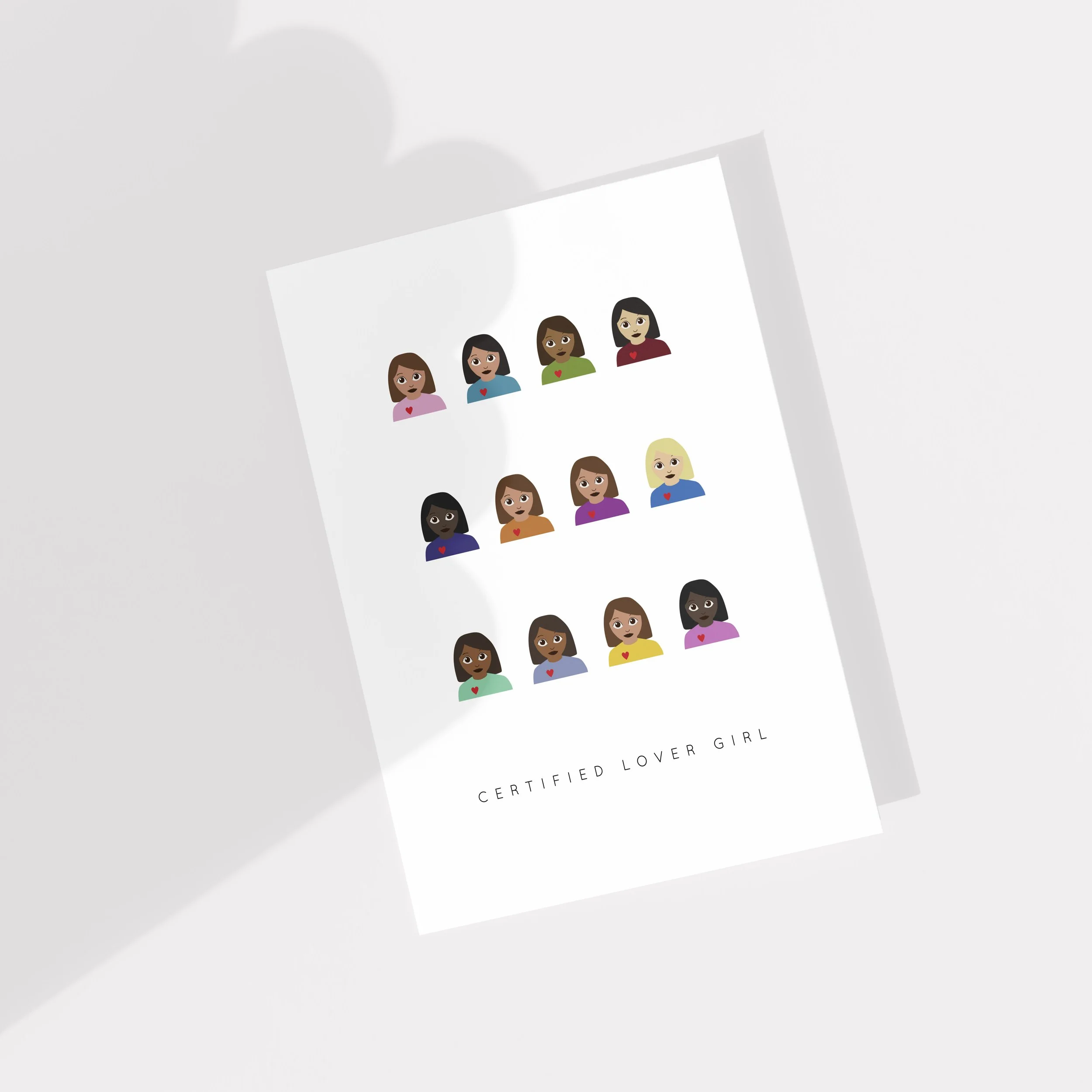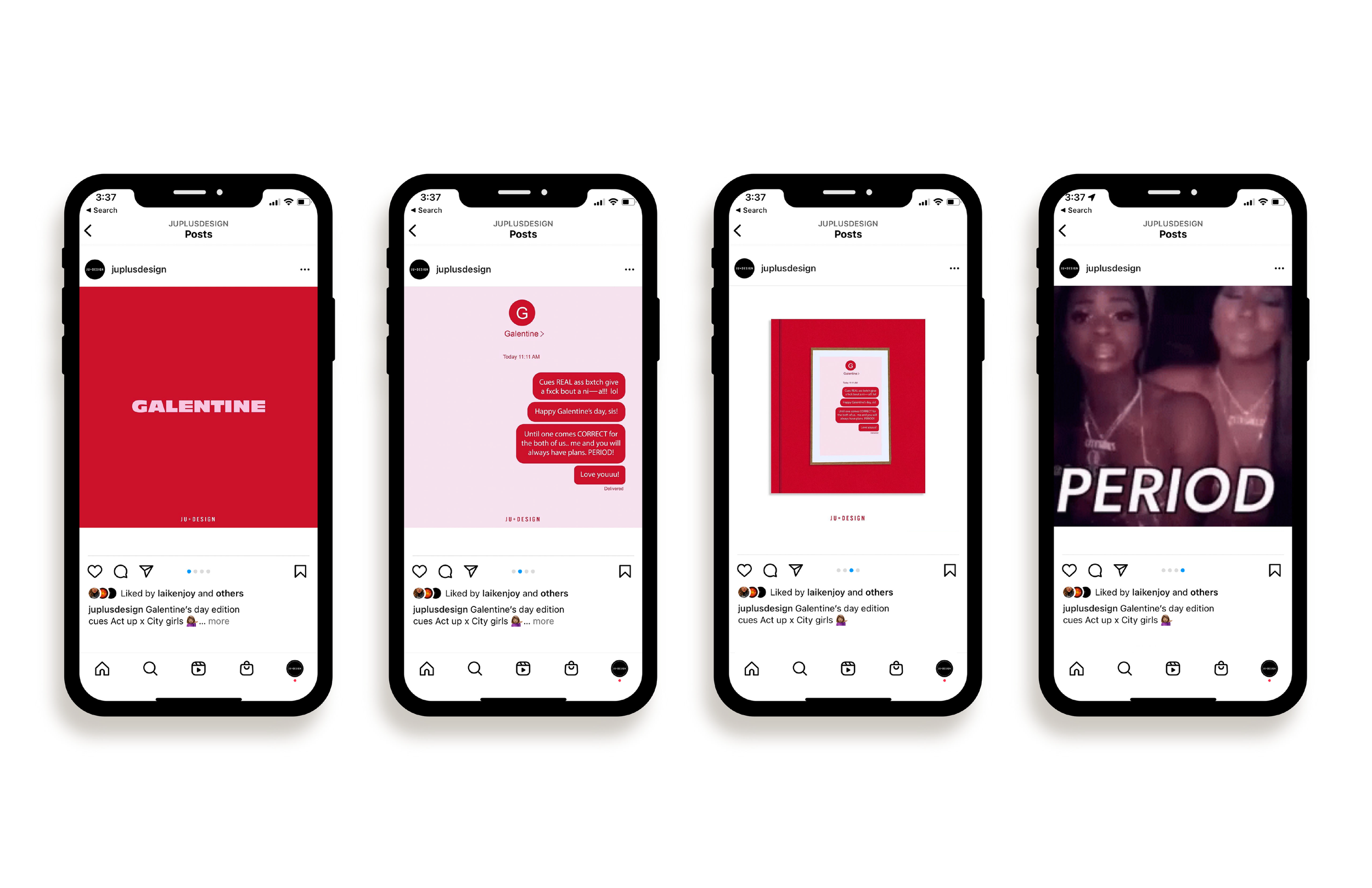 Valentine's replacing the V with G equals Galentine, a term created by women to celebrate the love we share with our homegirls for the day of love. I had to make a card dedicated to the women who have not found true love yet but still want to uplift each other until they do. The card mimics a text thread, and the inspiration for the card came from the explicit song "Act Up" by the city girls, whose lyrics start with "Real a$$ b—h give a f—k about a n—a," which I included on this card. Even though it is a few years old, the song is still catchy and holds weight, especially within the black community. I predicted this card would be a top seller (#2 in overall sales) so to toll out a short form video was a must to promote the card even further. To top off the rollout for the Galentine's day text thread card, I curated a Galentine's playlist specifically for the women available on Spotify and Apple Music.
