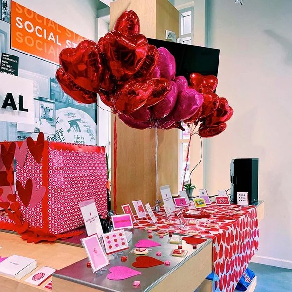 Social Status HTX team reached out to JU + DESIGN to do a Valentine's Day pop-up shop with my greeting cards. I curated my area to be all things lovely-dovey with decorations, custom made cookies, a writing station for the cards, cocktails, drinks, and a live DJ in the mix to top off the experience.